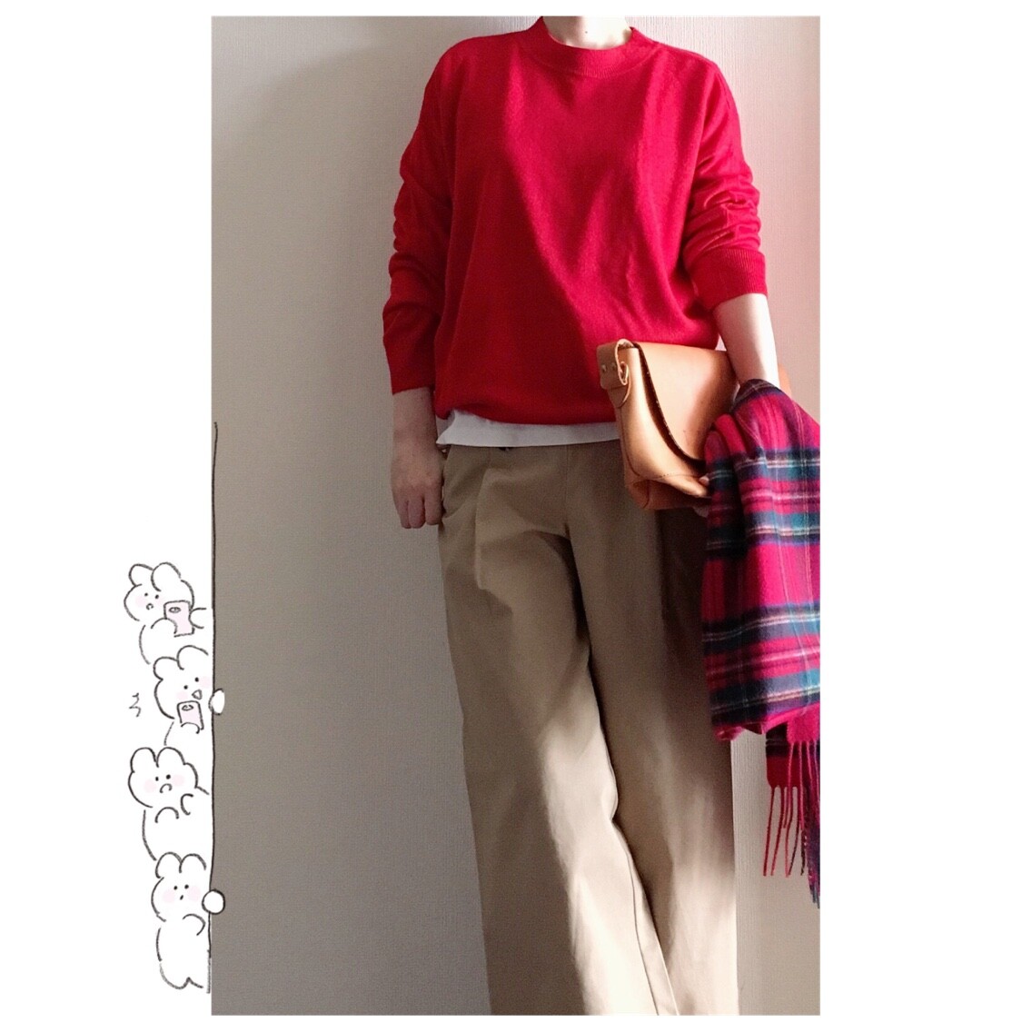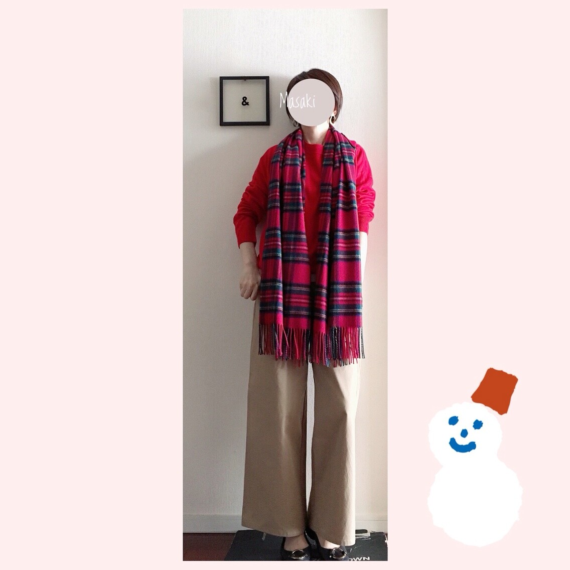 赤ニットに赤ストールを使うこと!