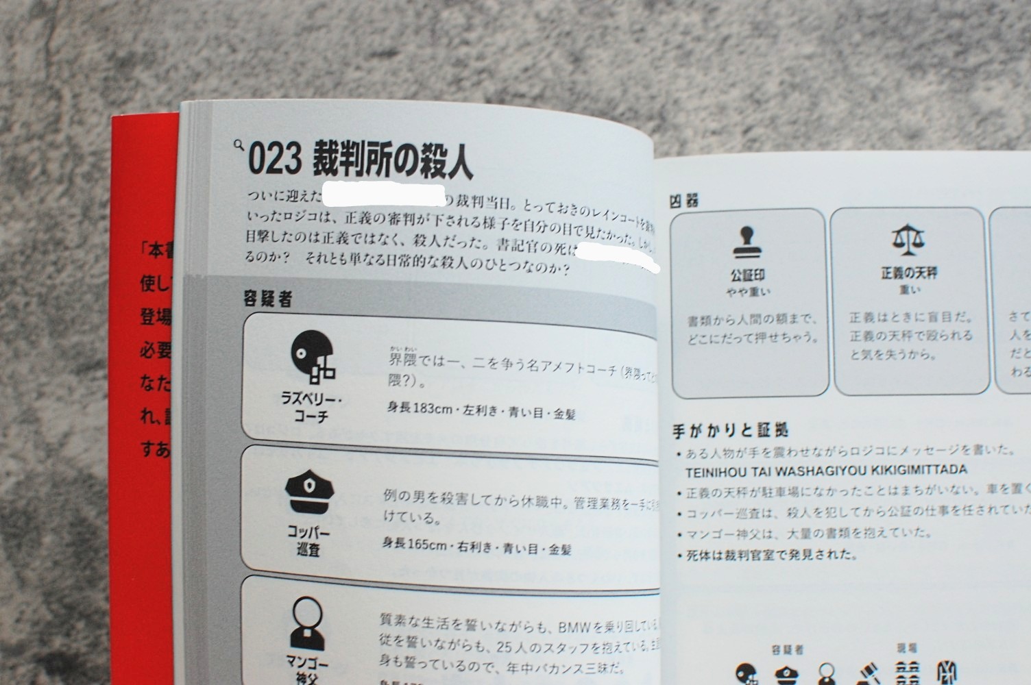 手がかりと証拠の情報を頼りに