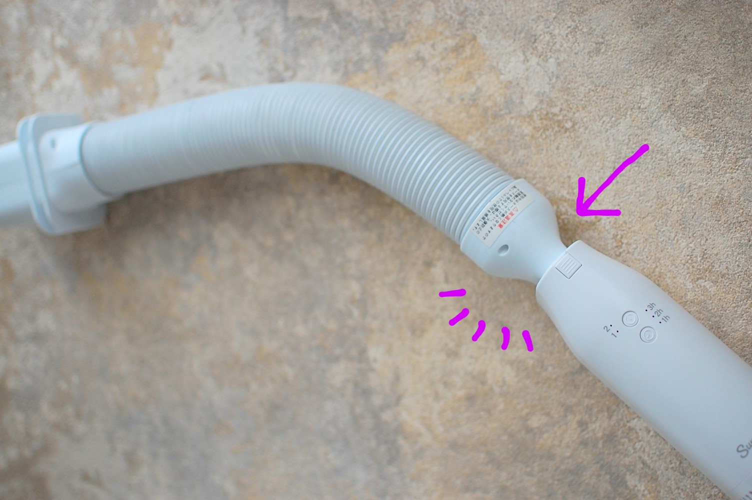 本体にじゃばらホースをカチっと接続